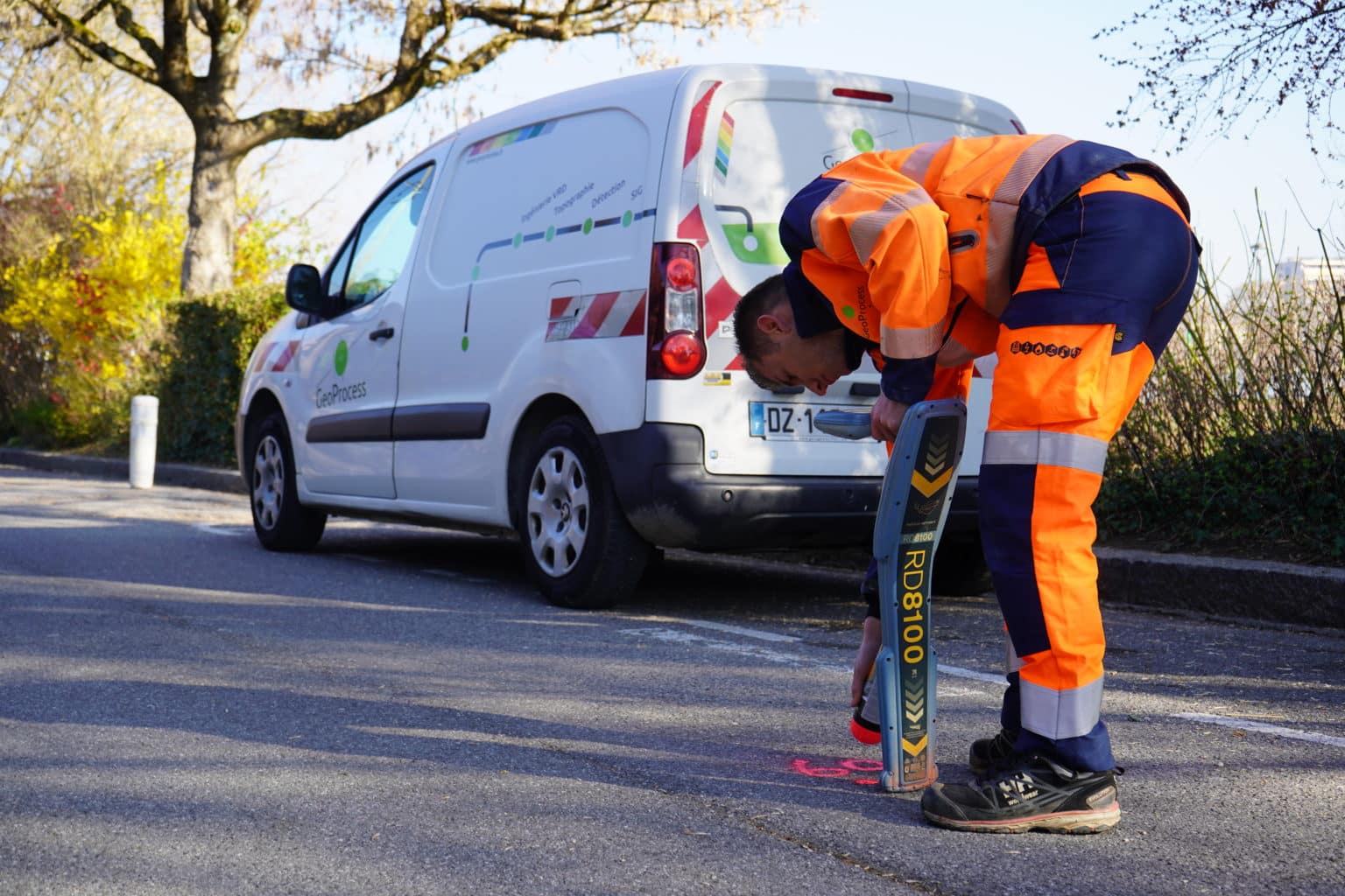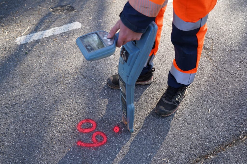 Juste avant les travaux, les techniciens GeoProcess Alpes procèdent à la densification du traçage initial de la détection (IC, OL), encore visible. L’ensemble des réseaux figurant sur le plan de marquage-piquetage est piqueté. Un PV de marquage-piquetage est proposé à la signature des parties lors d’une réunion sur le terrain.